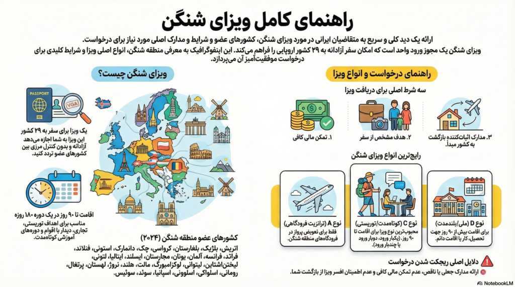 در این مقاله تلاش می‌کنیم به شکلی جامع و رسمی به این پرسش پاسخ دهیم که ویزای شینگن چیست، چه مزایا و شرایطی دارد، مدارک مورد نیاز و مراحل ثبت نام آن کدام است و چه نکاتی برای افزایش شانس موفقیت در دریافت آن باید در نظر گرفته شود.